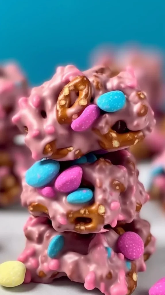 Because it is uncomplicated alchemy: chocolate melted slowly, nuts and pretzels folded into glossy ribbons, and a pop of pink to make the ordinary feel like an occasion. It asks little of you and returns a tray of treats that smell like hearthlight and happy hands — perfect for gifting, a cozy night in, or a quiet celebration.