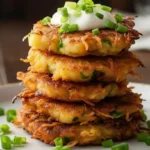 Present these golden cakes with an artistic flair—a vibrant platter adorned with optional toppings invites your guests to engage with their own creativity. Whether as an appetizer at a gathering or a comforting main course served alongside a crisp salad, these loaded delights promise to enchant.