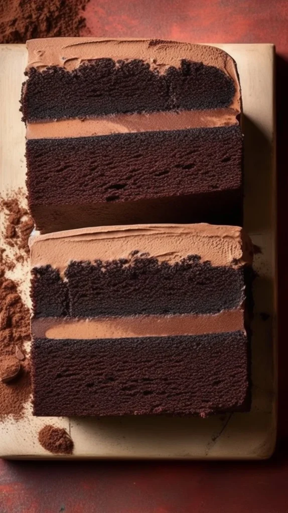 Serve at room temperature to let the flavors unfurl: a clean slice reveals a moist interior threaded with mocha warmth. Pair with a small cup of black coffee or a single espresso; the bitter aromatics of the coffee will echo the cake’s own notes. Garnish with a few chocolate shavings or a scattering of finely chopped toasted hazelnuts for contrast if you wish.