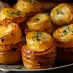 These little stacks are simple, elegant, and a true crowd-pleaser — crispy edges, tender centers, and that golden Parmesan hug. They’re perfect for holiday spreads or a cozy weeknight when you want something special without fuss. If you love the creamy richness of classic sides like potatoes au gratin, you’ll adore how these individual stacks show off the same comforting flavors in a bite-sized way.