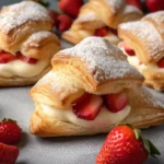- Fill each turnover with a layer of cream cheese mixture and diced strawberries. Dust with powdered sugar before serving.